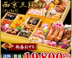 年末年始のおもてなし 予約年 2015年予約商品 販売元 オーナインショップ 商品名 四季彩オリジナル 西京(さいきょう)三段重 段 数 3段重 品 数 47品目 様 式 和 状 態 冷蔵タイプ 価 格 18,334円 ・・・